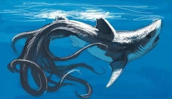 Some versions claim the creature has a shark-like head with tentacles, while others describe it as simply an enormous octopus.