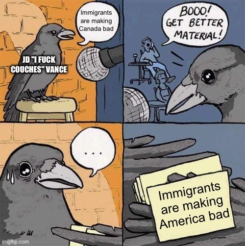 I think everyone acknowledges Canada has brought in too many immigrants recently, but it's not bad because immigrants are inherently bad, it's bad because we've brought them here under false pretenses. They are expecting that we will be able to provide opportunity and wealth that they could not get elsewhere, and we have far, far outstripped the economy, in its current configuration, necessary to deliver that. Our government did a stupid. Probably intentionally. And it will have consequences, which will be many. And people will blame immigrants for those consequences. But it's not their fault. It's the government who has robbed them, and us, of the economic necessities to better ourselves. We're in the same sinking boat as the immigrants. We can throw them out of the boat if we think it'll float a little better with less weight, but really we would be better off teaming up with them to stop all the assholes drilling holes in the bottom.