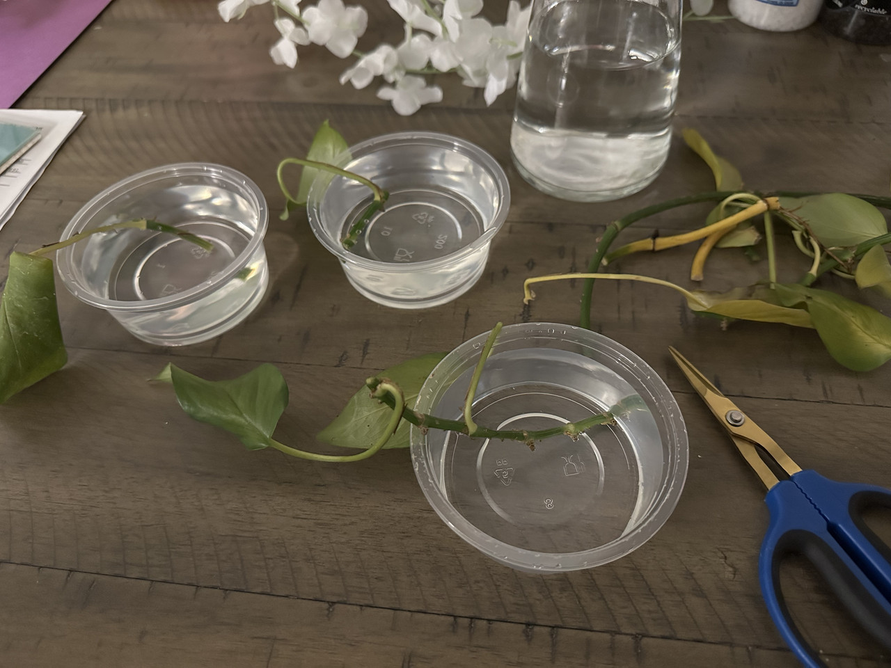 I'd recommend removing it from the pot and substrate to place in water for a day or two - leave it somewhere without direct sunlight to help promote root growth over shoot growth. This will also give you an opportunity to gauge how much root mass there is compared to the rest of the plant. If they seem about even, don't worry about cutting the stem back. If there's more shoot than root, cut the stem back just above one of the leaf nodes.